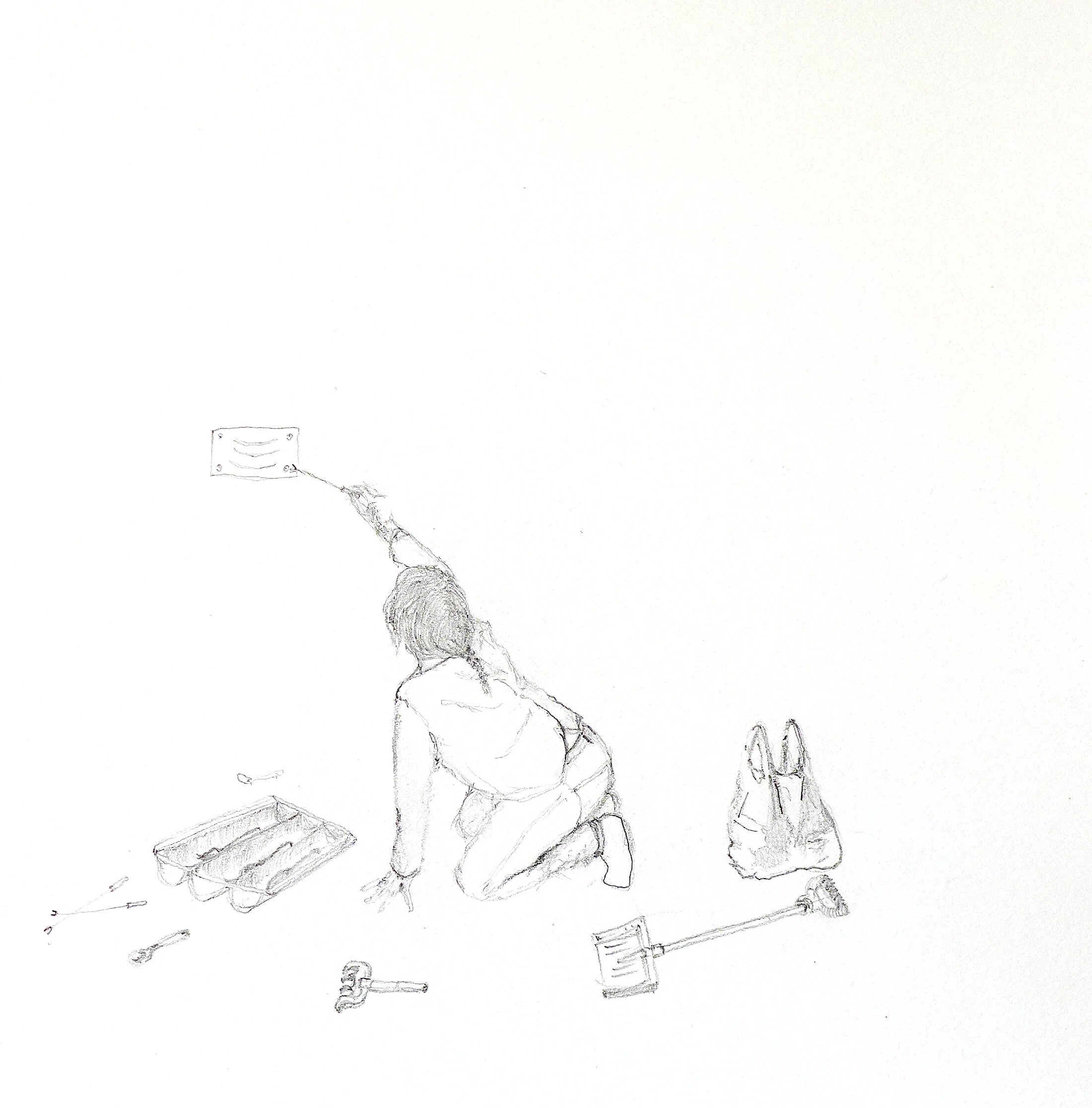 Série de six dessins, papier blanc 200g, format A3, graphite, crayon gris